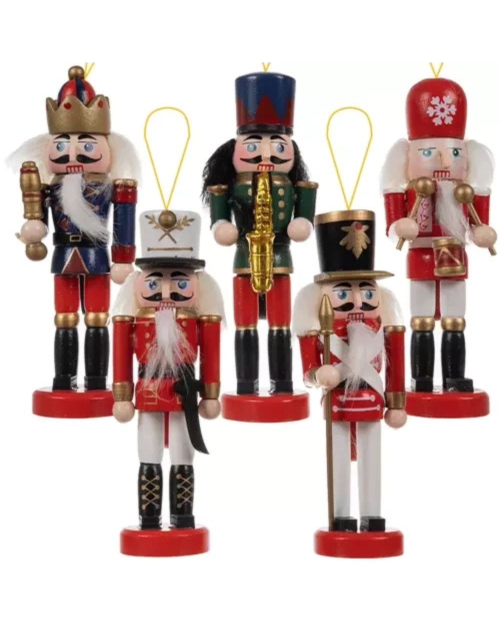 Šis 5 vienetų medinių spragtukų rinkinys yra klasikinė ir nesenstanti Kalėdų dekoracija. Kiekvienas 13 cm aukščio kareivėlis yra universalus („2-in-1“): turi aukso spalvos virvelę kabinimui ant eglutės ir stabilų pagrindą statymui ant židinio ar stalo. Spragtukai pasižymi autentiška detale – nugaroje esančia svirtele, kurią paspaudus juda lėlytės burna.