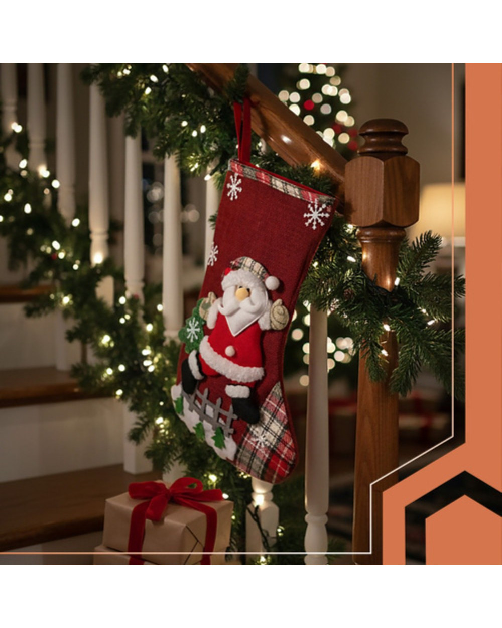 Kalėdinės židinuko kojinės RUHHY dovanoms – 4 raštai, dekoratyvios ir talpios