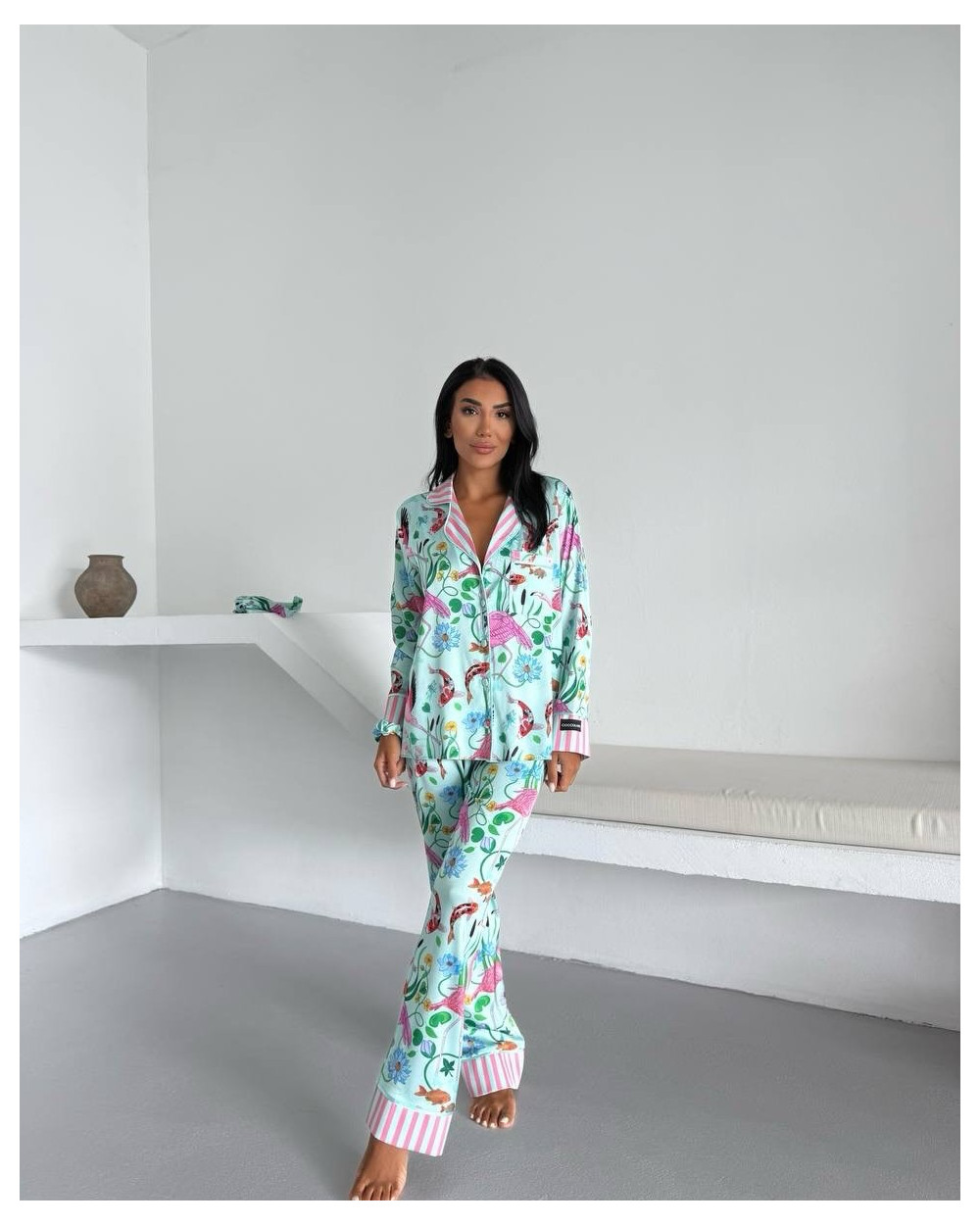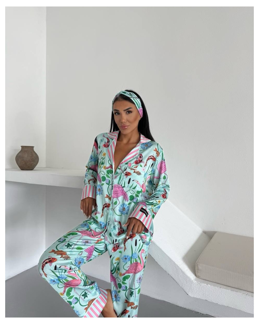 Pižama su kelnėmis Melisa tai ryškių spalvų bei nuostabaus grožio pižama. Tai prabangi šiuolaikinio stiliaus pižama puikiai tinkanti nešioti ir laisvalaikiu.