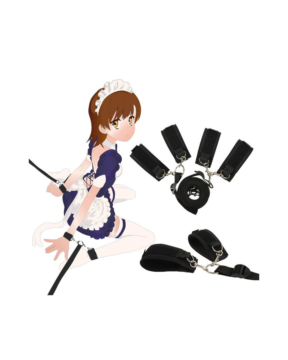 Paįvairinkite savo intymų gyvenimą su šiuo suvaržymo aksesuarų rinkiniu, skirtu suvaržyti riešus, kulkšnis ir naudoti virvę.